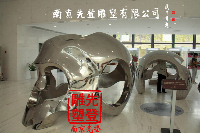項目簡介:南京湯山直立人博物館,不銹鋼雕塑 ,直立人頭骨雕塑 猿人頭像演變系列 直立人五步進化曲