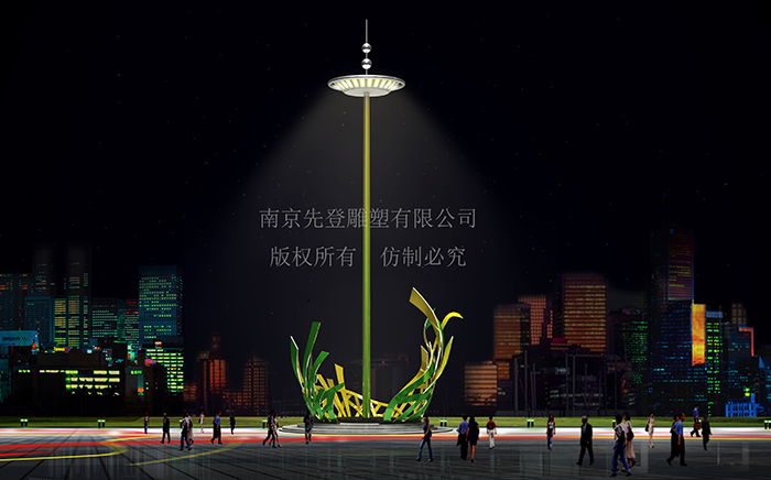 高桿燈不僅可以照明,如果給它搭配一點雕塑,將在寂靜的夜晚增添許多色彩。